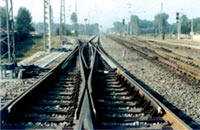 車輪在通過轍叉時(shí),從兩根翼軌的最窄處到轍叉心的最尖端之間有一段空隙,這就是道岔的有害空間。車輪通過此處時(shí),有可能因走錯(cuò)轍叉槽而引起脫軌。設(shè)置護(hù)軌的目的也就在此,它要強(qiáng)制引導(dǎo)車輪的運(yùn)行方向。