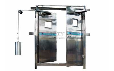2、門扇為角鋼、鋼板、鋼板網(wǎng)組焊而成,鋼板網(wǎng)對應(yīng)安裝鋼板門扇。