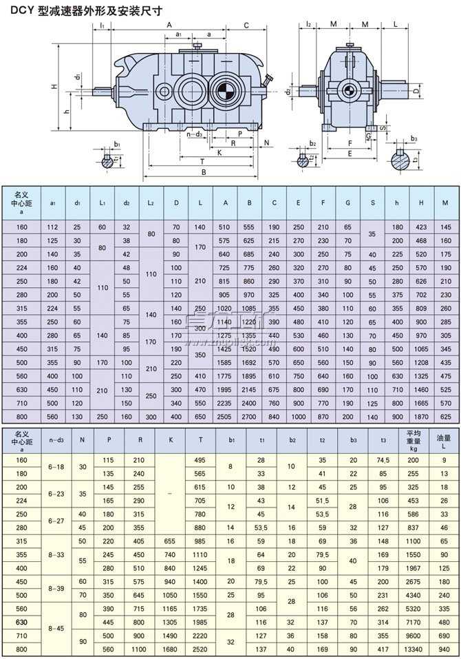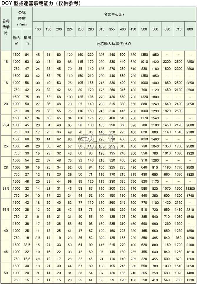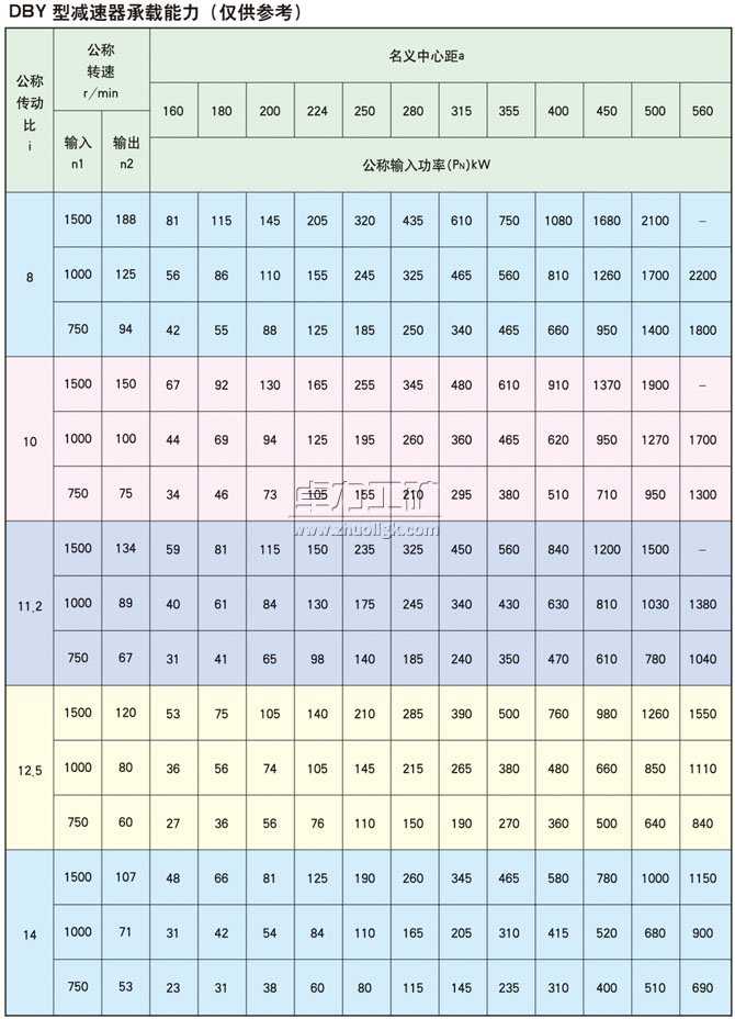 (1)DBY型為二級(jí)傳動(dòng),DCY型為三級(jí)傳動(dòng)。DBY型和DCY型第一級(jí)傳動(dòng)為格里森弧齒錐齒輪,第二、第三級(jí)傳動(dòng)為漸開線圓柱斜齒輪。