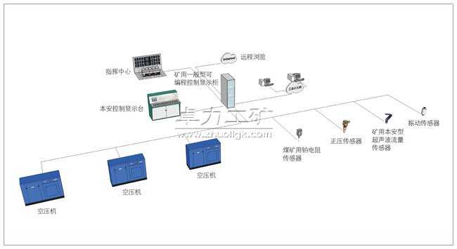 - 整個(gè)系統(tǒng)由礦用礦用一般型可編程控制顯示柜 (PLC)、液晶屏、各種保護(hù)傳感器和集控軟件部分組成。調(diào)度中心與控制站之間通過光纖總線方式連接組成控制網(wǎng)絡(luò),壓風(fēng)機(jī)分站之間即相對(duì)獨(dú)立,又互相聯(lián)接,組成一套靈活的系統(tǒng)。