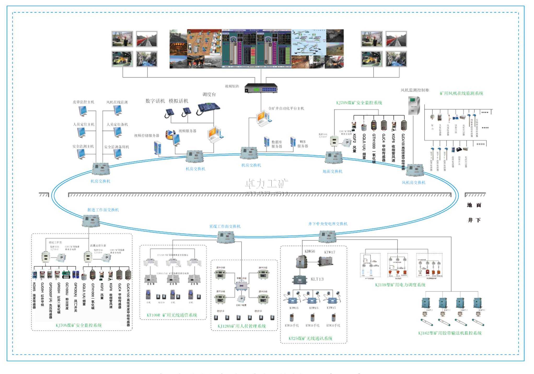 全礦井綜合自動化系統(tǒng),是一個1000Mbps冗余工業(yè)以太網(wǎng)井上、下自動化控制網(wǎng)絡(luò)平臺,是以工業(yè)以太環(huán)網(wǎng)為核心,整合礦井的各項自動控制系統(tǒng),通過防火墻與礦級管理系統(tǒng)組成高速統(tǒng)一的整體網(wǎng)絡(luò)結(jié)構(gòu),實現(xiàn)了全礦井的管控一體化。 整個系統(tǒng)分為信息層、控制層、和設(shè)備層三層體系結(jié)構(gòu)?刂茖硬捎霉I(yè)以太環(huán)網(wǎng),設(shè)備層采用現(xiàn)場總線,保證了現(xiàn)場子系統(tǒng)的實時性,實現(xiàn)了井上、下皮帶運輸、通風(fēng)、排水、井下供電等井下主要安全生產(chǎn)環(huán)節(jié)和裝備運行狀況的實時監(jiān)測和集中、遠(yuǎn)程控制,有效地提高了礦井生產(chǎn)自動化和管理現(xiàn)代化水平。實現(xiàn)全礦井的統(tǒng)一管理與數(shù)據(jù)共享。