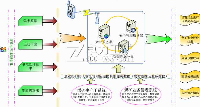 煤礦管理,安全為天! 我公司針對(duì)煤礦企業(yè)的特性,精心研發(fā)出全面、實(shí)用的頂板安全管理信息系統(tǒng)。該系統(tǒng)首次采用事故樹分析模型和多指標(biāo)安全綜合評(píng)價(jià)法,實(shí)現(xiàn)了對(duì)事故發(fā)生原因的定性分析和事故發(fā)生概率的分析、預(yù)測(cè)以及礦井安全的多指標(biāo)評(píng)價(jià),使安全隱患的處理時(shí)間大大縮短,有效降低了各類事故的發(fā)生,提高了全礦井的安全等級(jí),對(duì)規(guī)范日常管理和預(yù)防事故的發(fā)生起到了至關(guān)重要的作用。系統(tǒng)從事前風(fēng)險(xiǎn)預(yù)控(危險(xiǎn)源辨識(shí)、安全證件管理、人員走動(dòng)巡查),到事中事件的跟蹤處理(安全隱患閉環(huán)管理、三違管理),以及最終的安全考核與評(píng)估分析等一系列功能,從人、機(jī)、環(huán)境方面實(shí)現(xiàn)了安全工作的量化管理,為煤礦企業(yè)打造本質(zhì)安全型礦井,提供有力、可靠的支持!