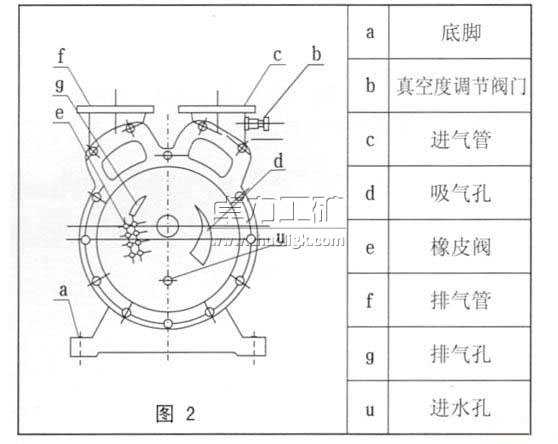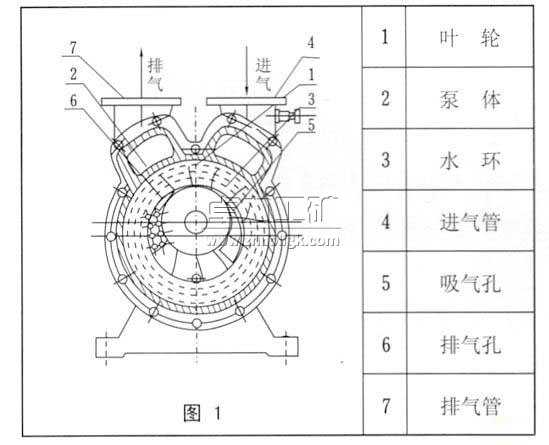 如此葉輪每轉動周,葉片間的空間容枳改變一次,每個葉片間的水好象活塞一樣往復一次,泵就連續(xù)不斷地抽吸氣體。