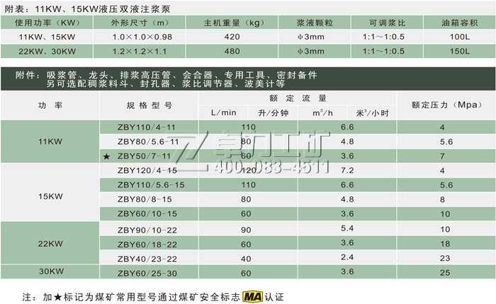 山東卓力工礦ZBY型11kw/15kw/22kw/30kw液壓雙液注漿泵型號(hào)齊全: