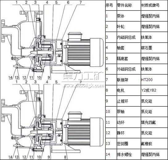 5、塑料自吸磁力泵長時(shí)間運(yùn)行后,發(fā)現(xiàn)泵有異常情況(噪音大,震動(dòng)加?。?,應(yīng)拆檢軸承和端面動(dòng)環(huán)的磨損情況,若軸承和泵軸的間隙、葉輪軸向竄動(dòng)較大時(shí),應(yīng)更換軸承和軸向動(dòng)環(huán)。